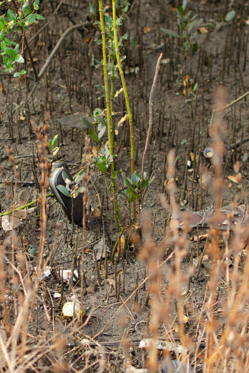 soumitra told me about a birding area in bombay’s eastern suburbs. walked into a mangrove forest ; it was littered with all the garbage that bombay dumps into its sea ; it was also an incredibly quiet place, where we could walk and converse for hours without seeing a single soul.
