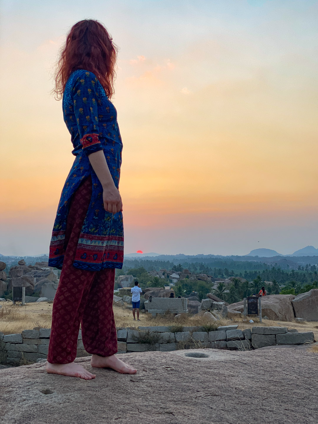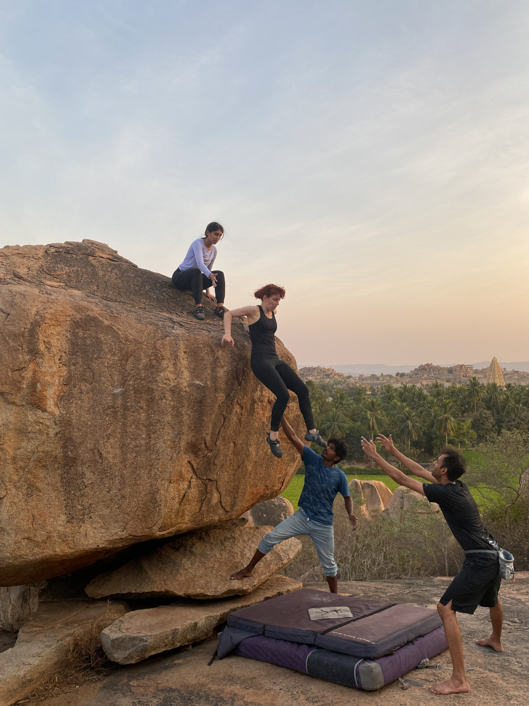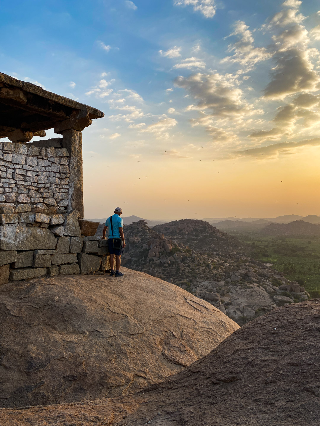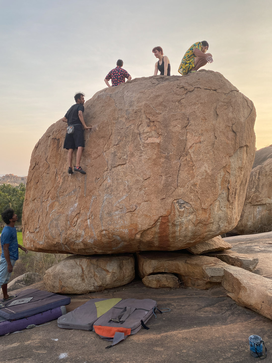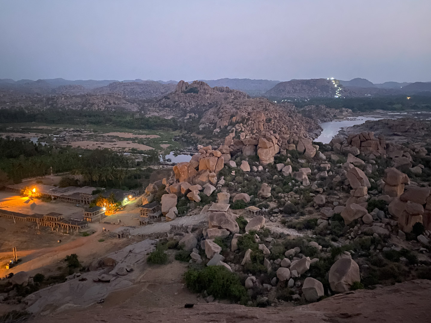 a quick visit to badami’s hindu and jain cave-temples. short-stops at sites of architectural experimentation at pattadakal and aihole. hampi: dawn on matanga hill ; bouldering, north of the river ; a guided-tour of its monuments, temples and ruins ; and sunset from hemakuta hill. an attempt to cut-off from news and social-media for a week: unsuccessful, because news about india’s chaotic efforts to stymie sars-cov-2 kept trickling gushing in.