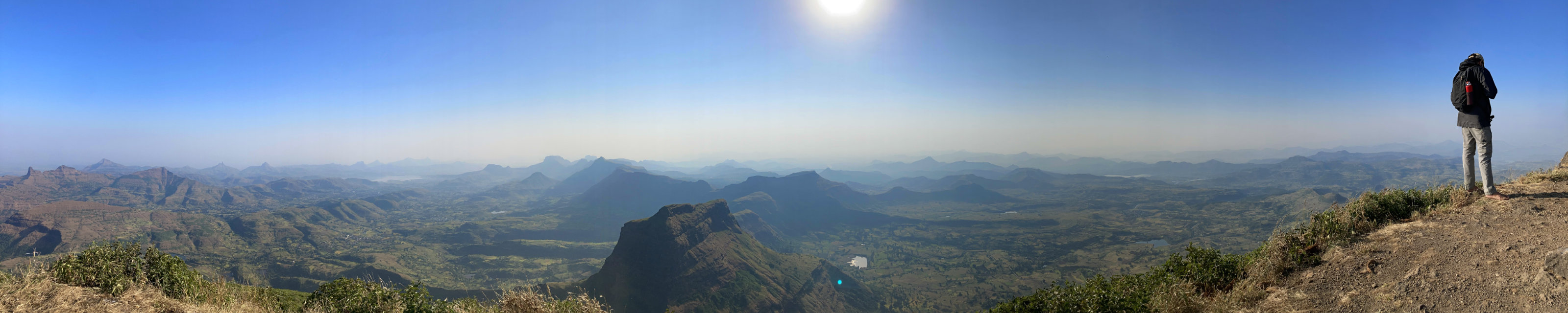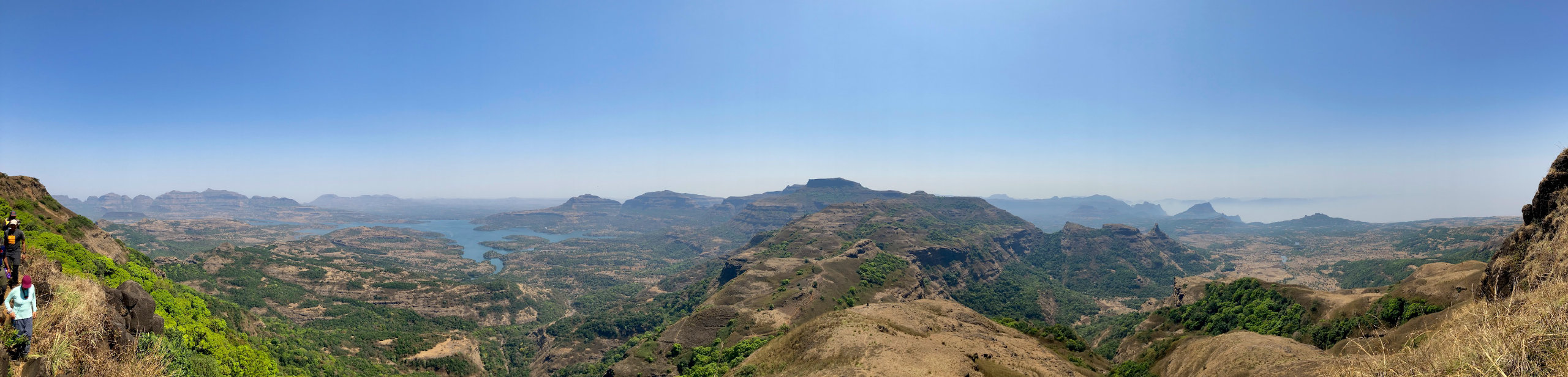 bhandardara lake and range ; as seen while climbing up kathrabai.