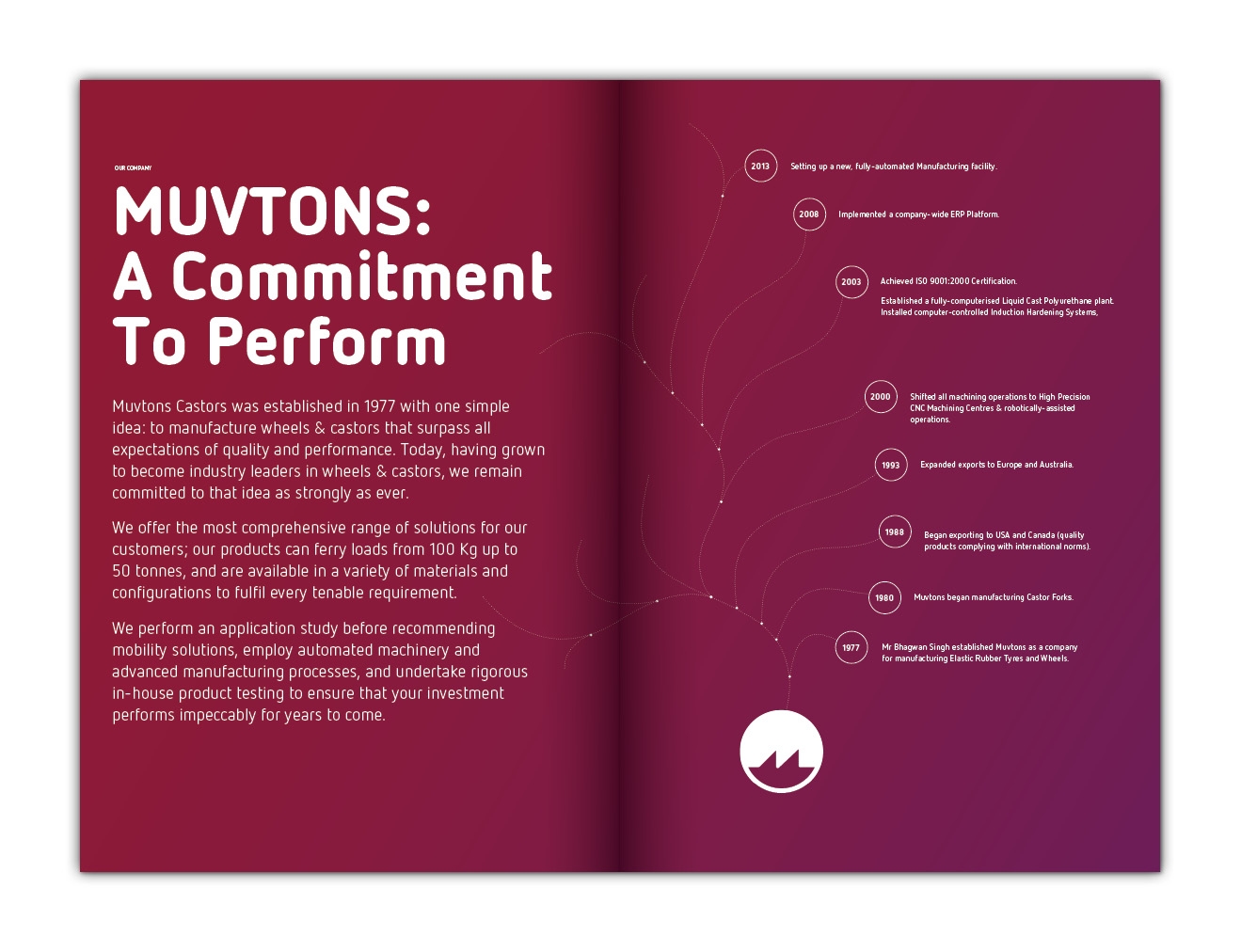 a gradual flow of colours across pages depicted the comprehensive range of products manufactured by the company.