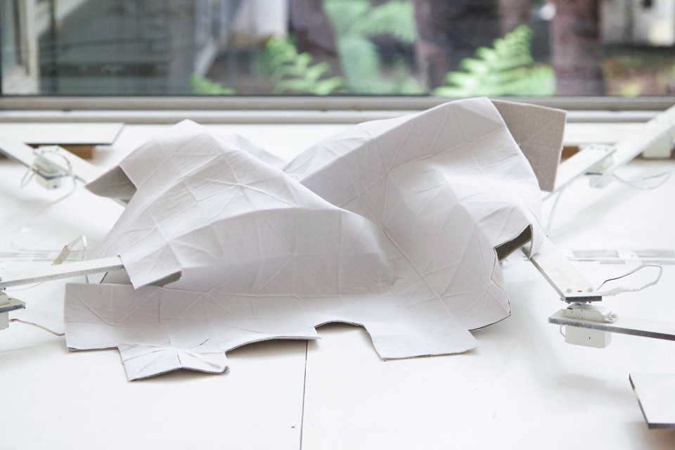 work: video; and simple prototype (fabric, mdf, servo-motors, projection, arduino).