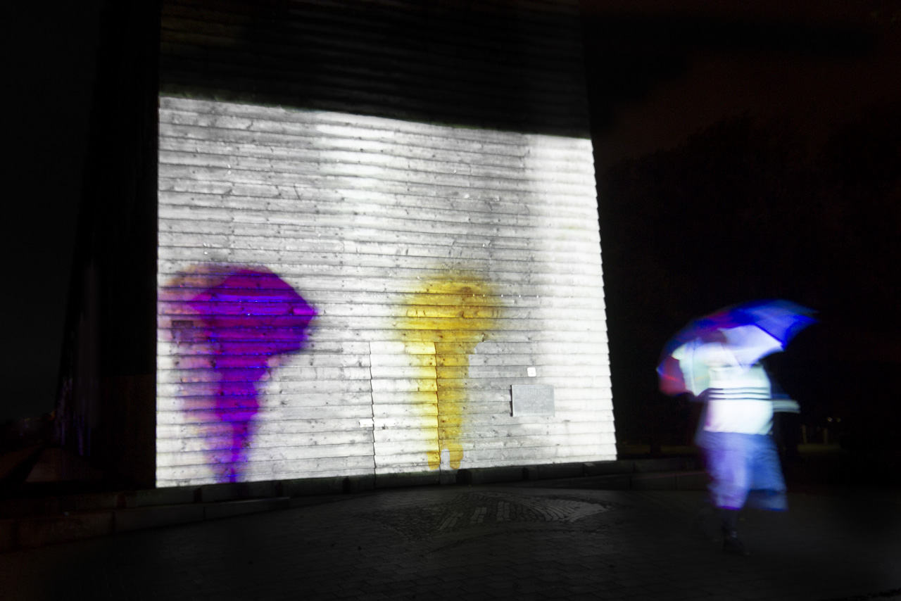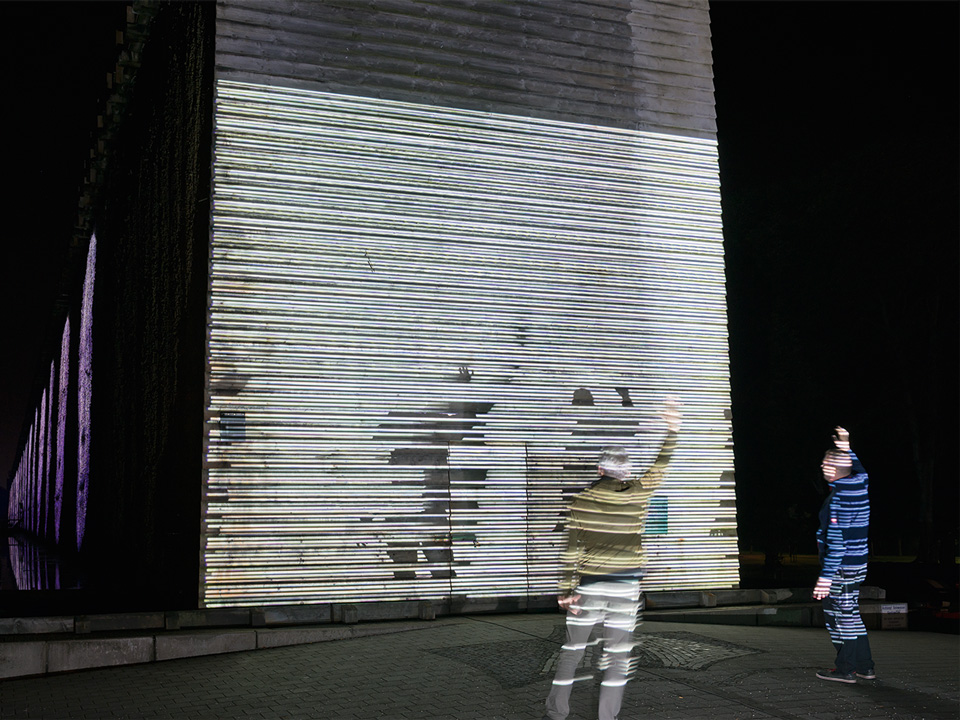 project design for random’s exhibit at the projection biennale, lichtsicht 5 ; demonstrating the idea, “what if projectors didn’t ask people to get out of their way?”