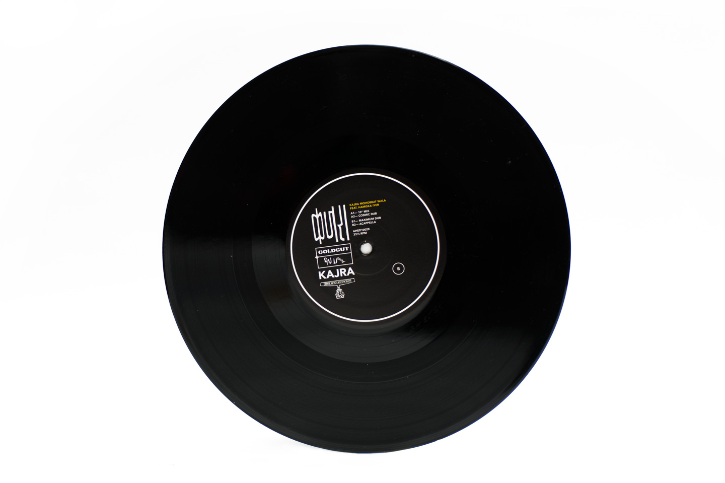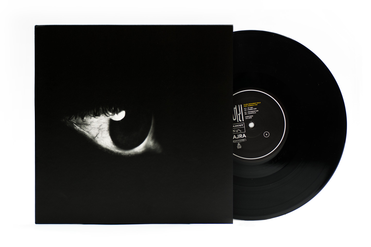 so, for kajra’s vinyl cover design, i photographed a kohl-adorned eye and wrote कजरा with charcoal for the front- and back-side of the cover.