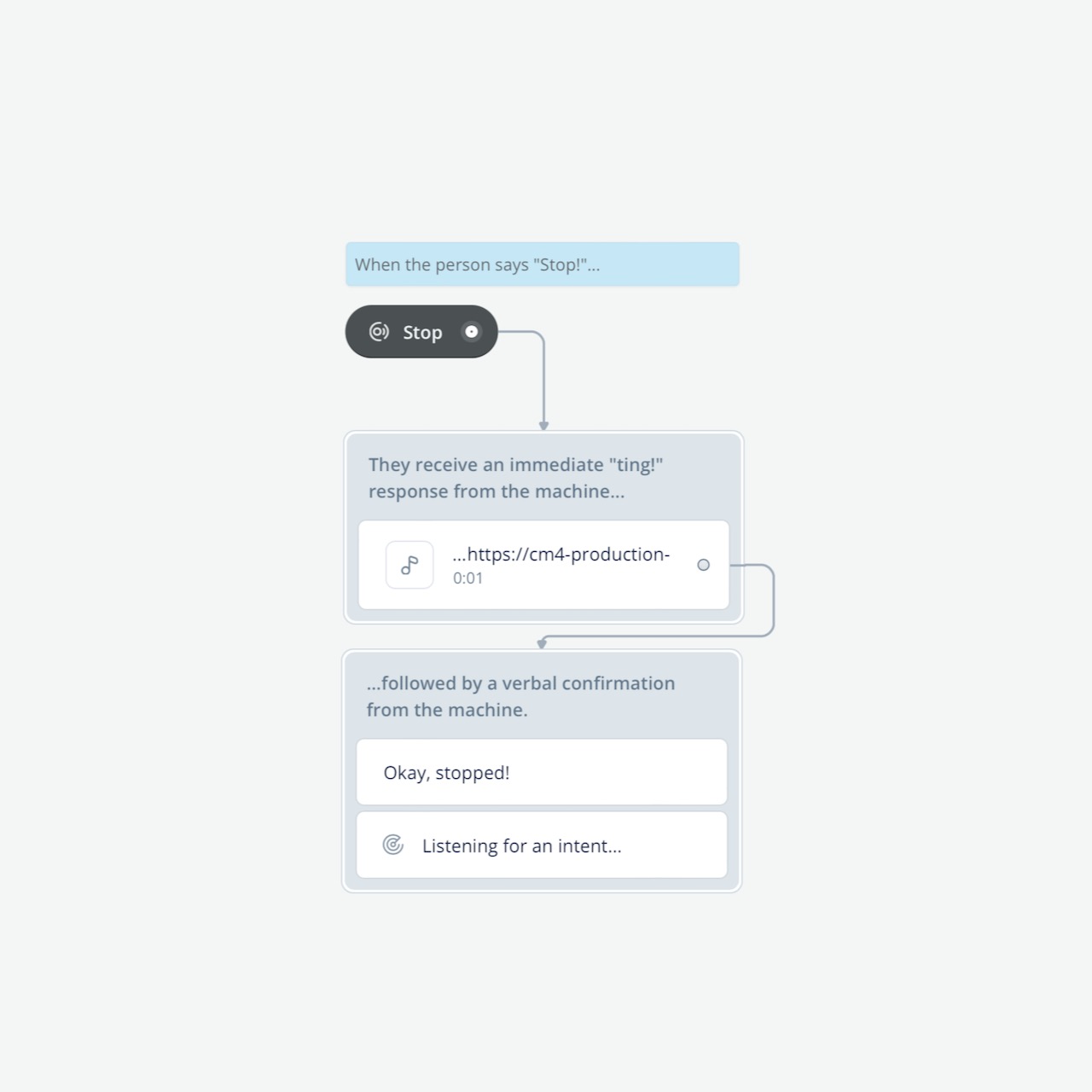 we also noticed how, in a multi-modal experience (using voice, earcons, and visuals), we can trigger modes individually, together or in a sequence. for example, when offering feedback (to denote success or error), it may be more affective for the machine to play an earcon before displaying visual feedback.
